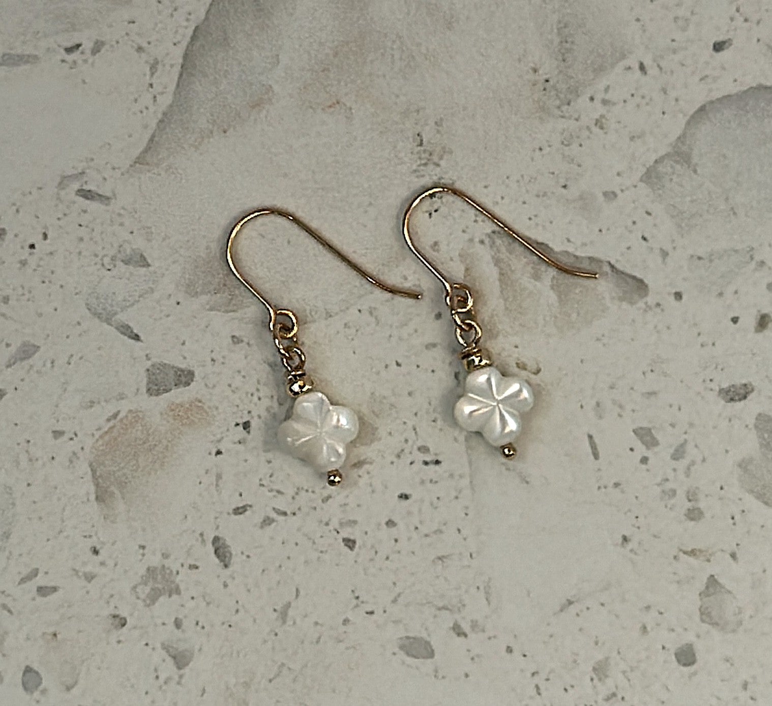 Hand-carved from shimmering mother of pearl, these clovers sparkle with delicate gold-filled accents.